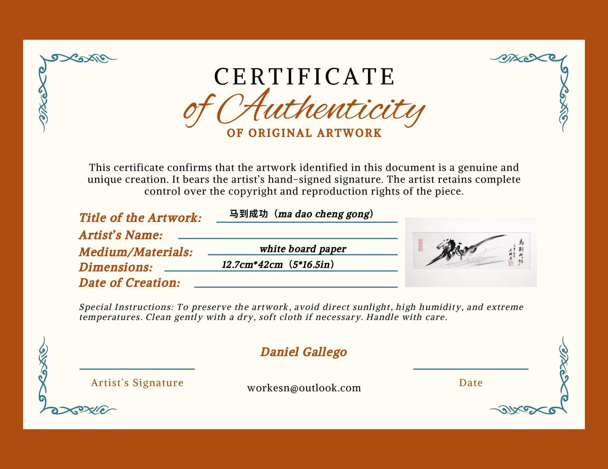 Each artwork is personally commissioned and created by the artist using traditional finger painting techniques combined with masterful calligraphy. The dynamic energy of the galloping horse paired with the auspicious calligraphy creates a one-of-a-kind piece that cannot be replicated. You're not just purchasing art—you're commissioning a unique creation made specifically for you.